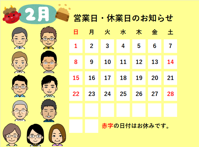 2026年2月営業日・休業日のお知らせ